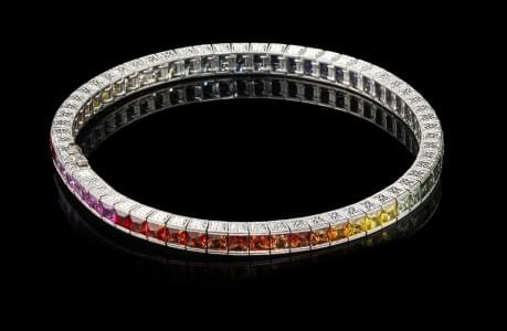 225. *Bracelet ciselé serti d'une ligne de saphirs multicolores (env....