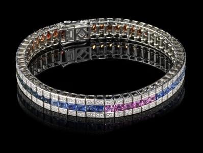 223. Bracelet rivière serti de saphirs taille brillant (env. 14 ct) r...