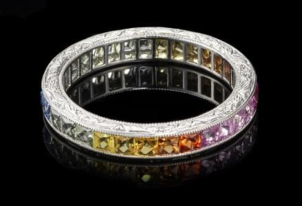 227. *Anneau rivière ciselé serti de saphirs multicolores calibrés (e...
