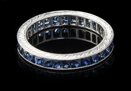 228. *Anneau rivière ciselé serti de saphirs calibrés (env. 1,6 ct)