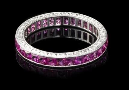 229. *Anneau rivière ciselé serti de rubis calibrés (env. 1,6 ct)