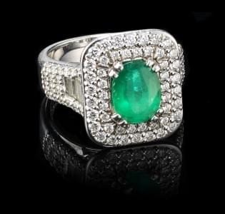 235. Bague sertie d'une émeraude colombienne taille ovale (1,64 ct) d...