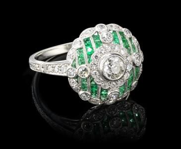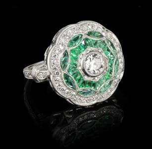 Centrée d'un diamant taille ancienne (env. 0,45 ct) entouré d'ém...