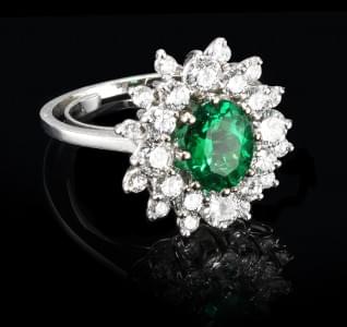 231. Bague centrée d'une émeraude taille ovale (env. 1,4 ct)