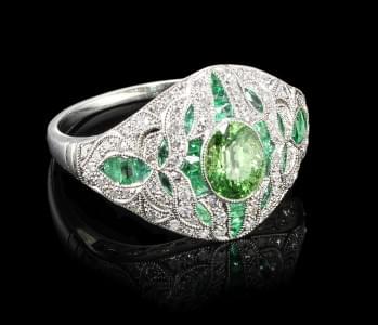Centrée d'un grenat tsavorite taille ovale (env. 1 ct) sur un mo...