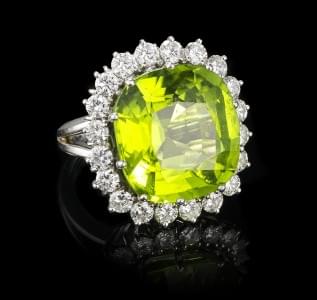 238. Bague sertie d'un péridot taille coussin (env. 15 ct) entouré de...