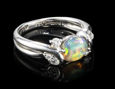 239. Bague sertie d'une opale australienne à fond noir taille cabocho...