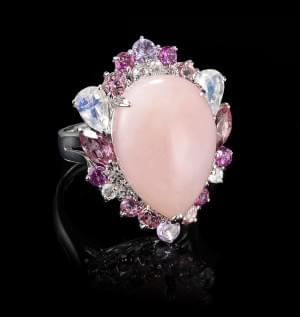 240. *Bague sertie d'une opale rose cabochon taille poire (env. 9 ct)...