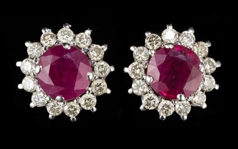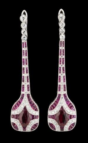 247. Pendants d'oreilles sertis de rubis taille ovale (env. 1.6 ct) e...