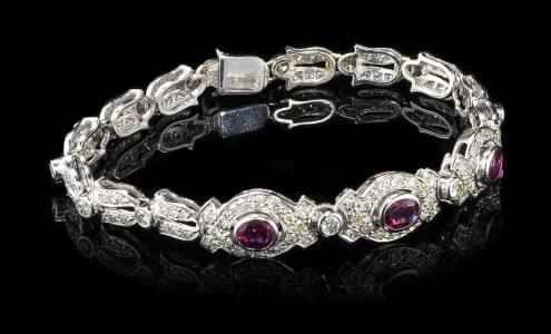 246. Bracelet serti de rubis taille ovale (env. 1.2 ct) et pavé de di...