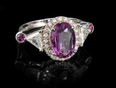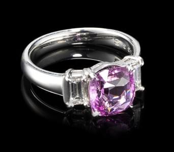 257. Bague sertie d'un saphir rose Madagascar non chauffé (3,02 ct) é...