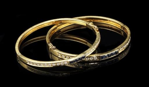 266. Ensemble de deux bracelets joncs ouvrants sertis de saphirs cali...