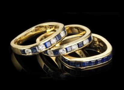 267. Ensemble de trois anneaux sertis de saphirs calibrés, deux d'ent...