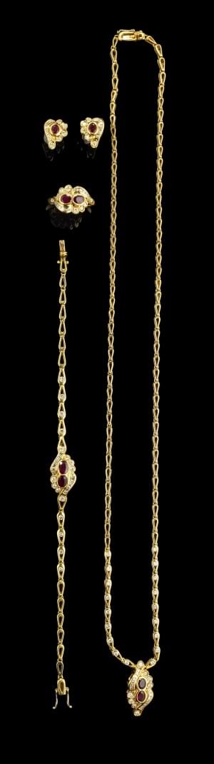 269. Parure composée d'un collier, un bracelet, une bague et des clou...