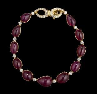270. Bracelet serti de rubis non chauffés taille cabochon (43,31 ct)...