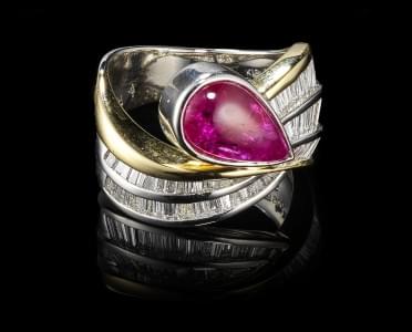 Sertie d'un rubis birman cabochon taille poire (env. 2,7 ct) sur...