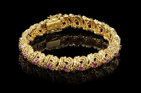 273. Bracelet à maille stylisée ajourée serti d'une ligne de rubis