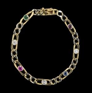 Serti de pierres précieuses et fines telles que des saphirs, éme...