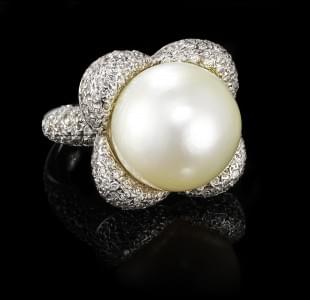 279. Bague centrée d'une perle des Mers du Sud (D env. 15 mm) sur une...
