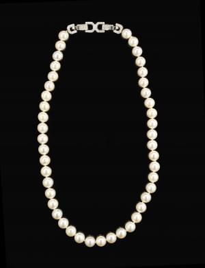 283. Collier de perles (D env. 8 mm) terminé par un fermoir à motif g...