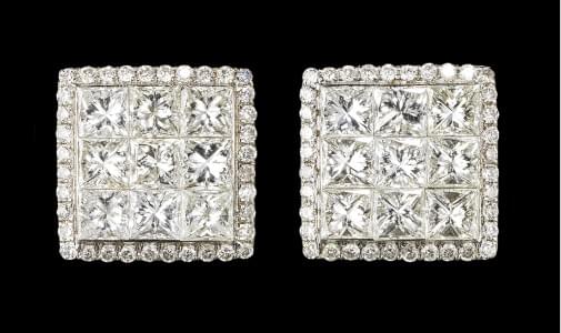 284. Clous d'oreilles carrés pavés de diamants taille princesse entou...