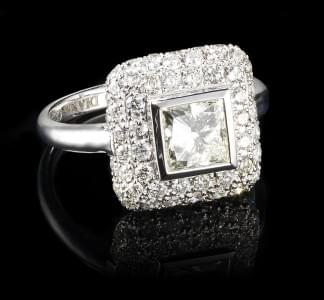 286. Bague carrée sertie d'un diamant taille princesse (1,02 ct) ento...