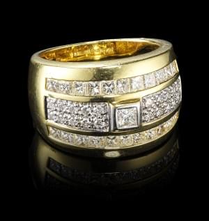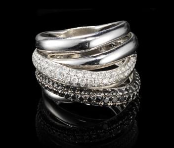 288. Bague multi-anneaux pavée de lignes de diamants et de diamants n...