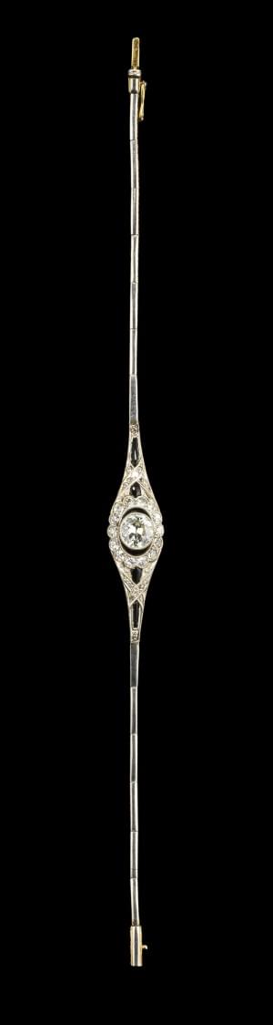 Circa 1910, or et platine, L 18 cm, 8 g