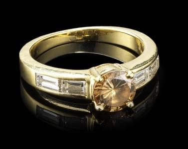 297. Bague sertie d'un diamant cognac (env. 0,85 ct) épaulé de diaman...