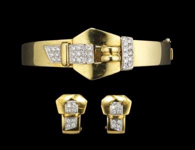300. Carl Bücherer, ensemble d'un bracelet jonc ouvrant et de boucles...
