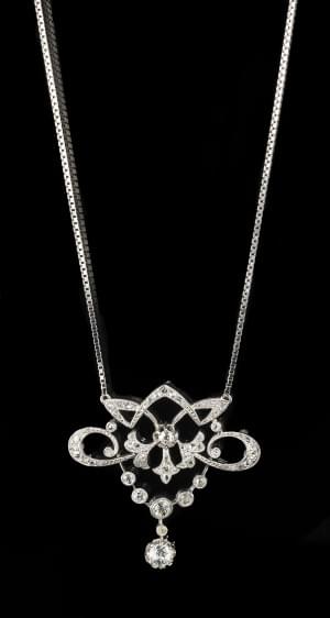 301. Collier retenant un motif ajouré serti de diamants taille ancien...