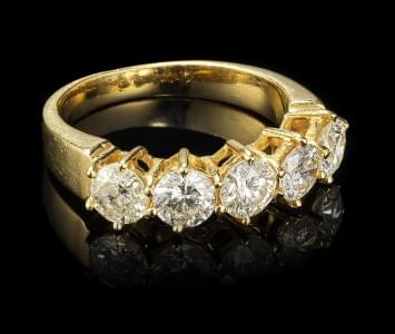 302. Bague sertie d'une ligne de cinq diamants taille brillant (env....
