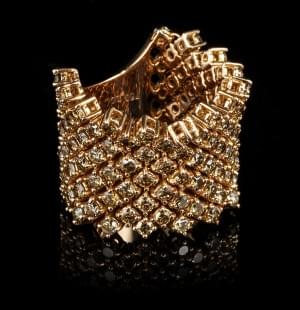 305. Bague souple pavée de diamants cognac (env. 3,4 ct)