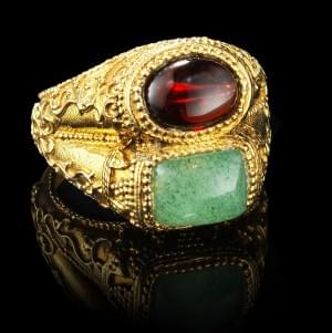 310. Zolotas, bague ouvragée sertie d'un grenat et d'une aventurine t...