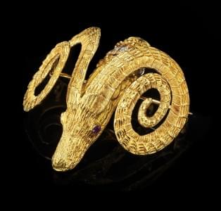311. Lalaounis, broche à motif de tête de bélier dans le style antiqu...