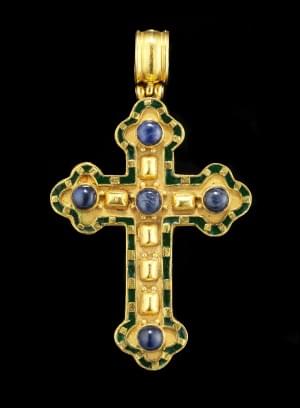 312. Lalaounis, croix de style orthodoxe sertie de quatre saphirs tai...