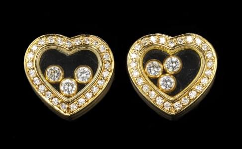 325. Chopard, Happy Diamonds, clous d'oreilles à motif de cœur sertis...