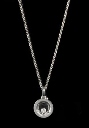 329. Chopard, Happy Diamonds, chaîne à maille forçat retenant un pend...